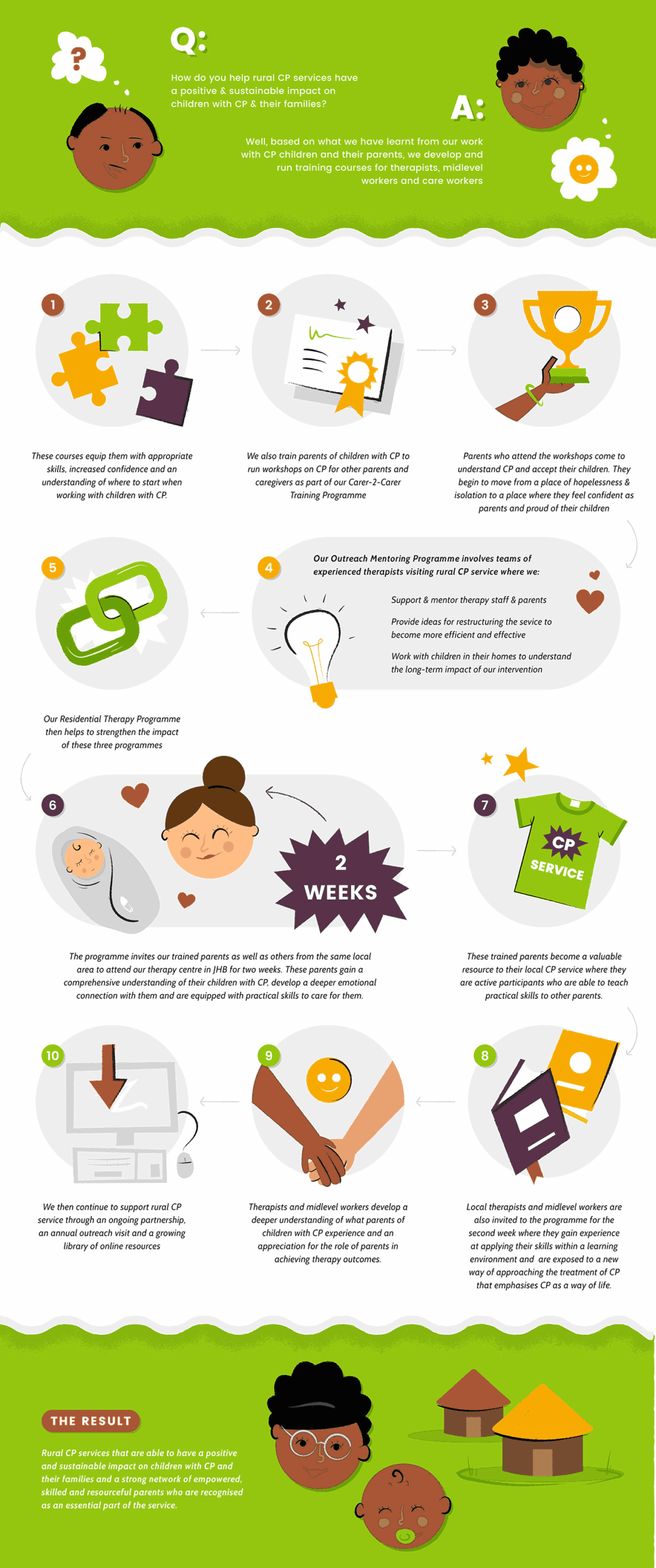 We use a systems-based approach to address all levels of a rural CP service, in order to ensure that quality and comprehensive services reach those who need them most.